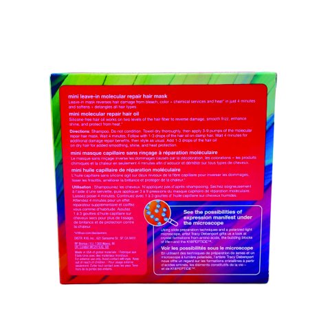 Mini mascarilla capilar reparadora molecular sin enjuague (15ml/0.5fl oz): La mascarilla sin enjuague revierte el daño del cabello causado por la decoloración, el color, los servicios químicos y el calor, en solo 4 minutos y suaviza y desenreda todo tipo de cabello.